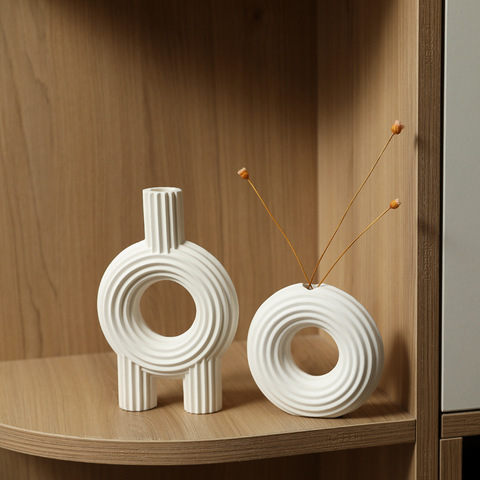 طقم فازة بيضاء بسيطة لغرفة المعيشة سطح الطاولة نورديك إبداعي لترتيب الزهور فازة