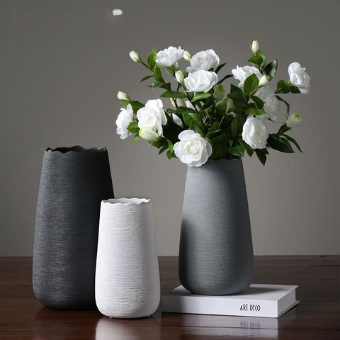 منتج سيراميك ناعم أبيض وأسود حديث بسيط لترتيب الزهور لغرفة المعيشة