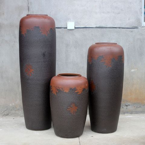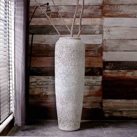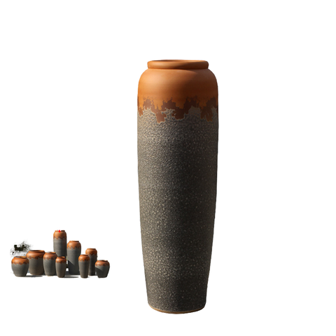 Florero de cerámica de arcilla áspera Retro, jarrón de cerámica para suelo, artículo de decoración de paisaje, tarro de cerámica, artesanía