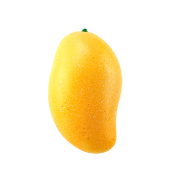 La vetrina presenta oggetti fotografici per la decorazione domestica di frutta artificiale come la pesca alla mela crema pasticcera all'ananas