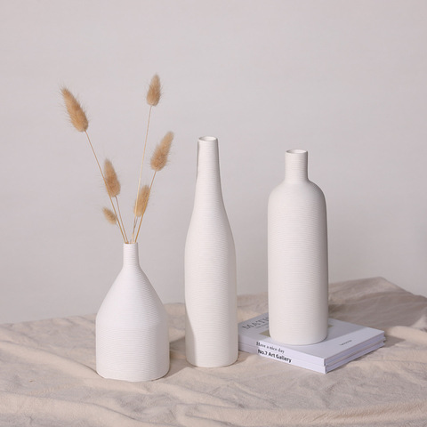 Vaso cerâmico branco nórdico para decorar a sala de estar Flower Arrangement Container ou Soft Furnishing Piece