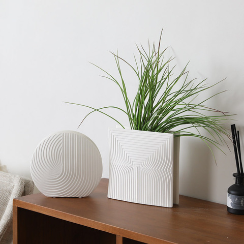 Creative Stripes Art Cerâmica Flower Vase Decor Item para sala de estar Trendy Ins Style Flower Arrangement Soft Decorative Item